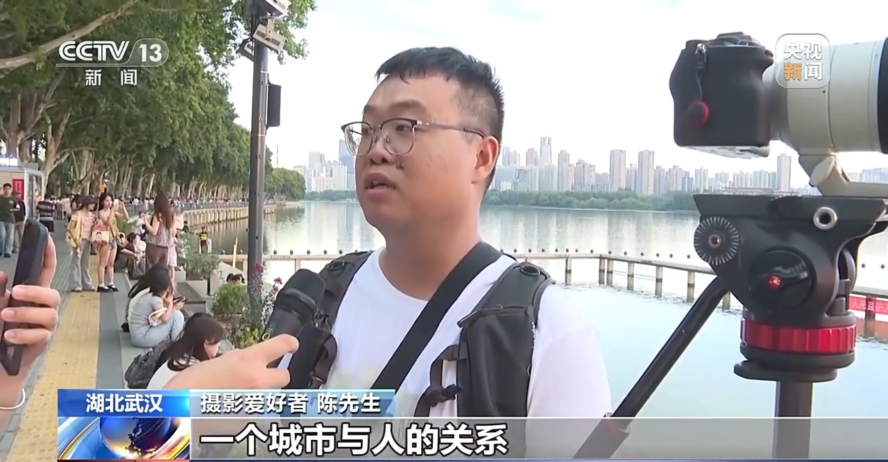 摄影爱好者 陈先生:感觉日出还蛮棒的,人也蛮多的,体现出武汉一个人与自然、一个城市与人的关系。