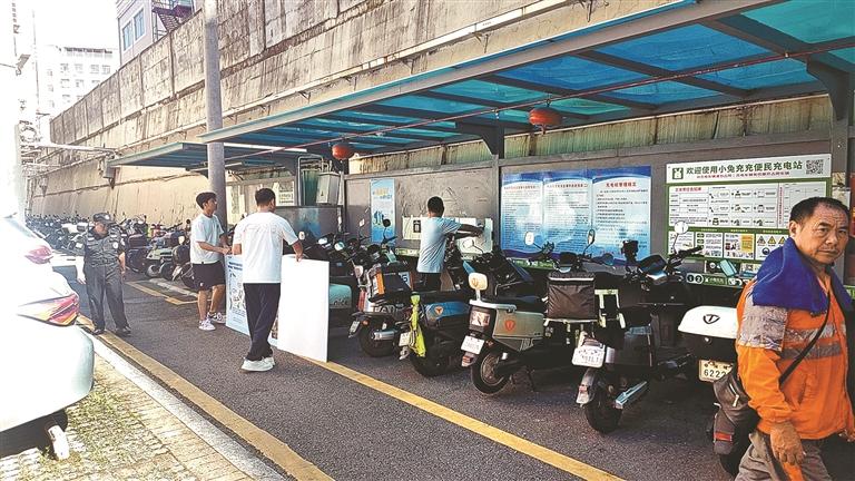 在观湖街道松元厦社区上围新村,充电点位设置相应的充电使用规范。