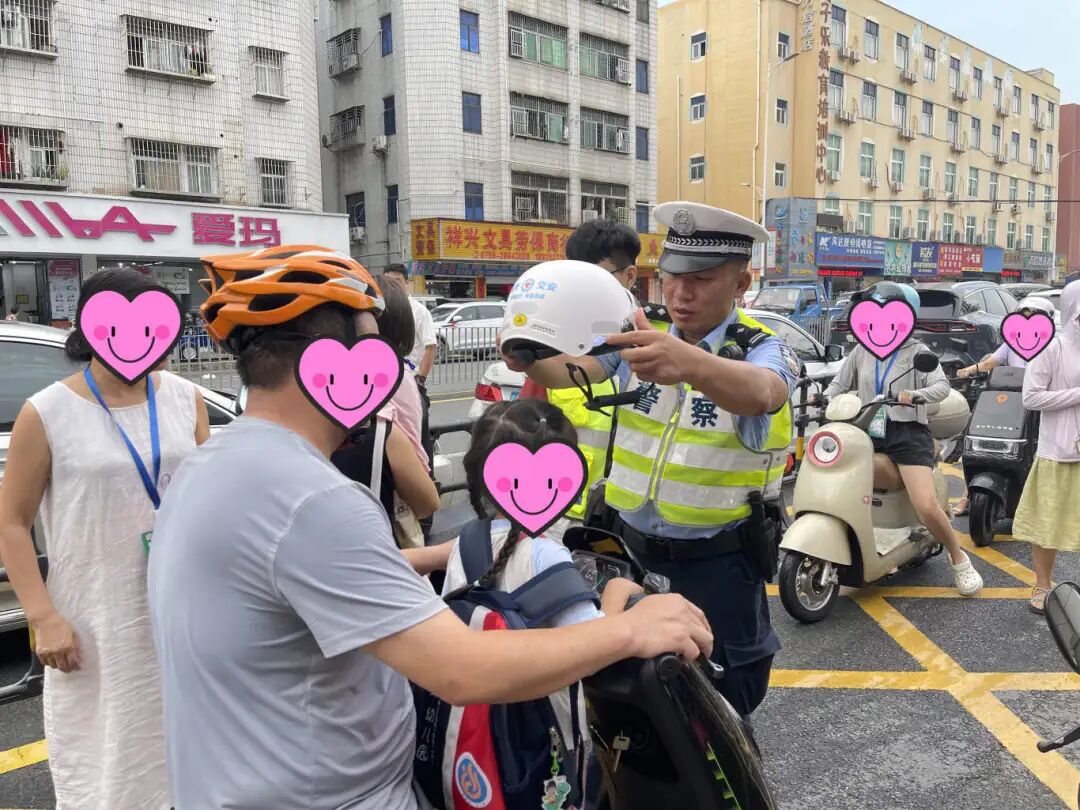 家长骑电动自行车接送孩子时,务必做到“一人一盔”,骑行时不闯红灯、不逆行、不走机动车道。