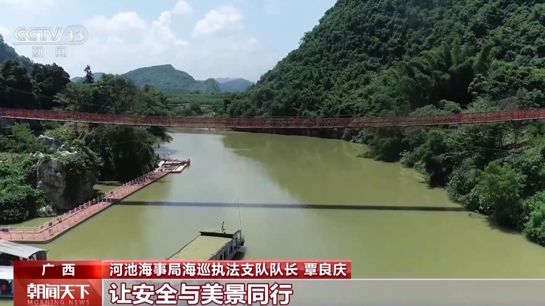 河池海事局海巡执法支队队长 覃良庆:我们瞄准乡村振兴、文旅融合新业态,打造了这条新的路线。组织乘客参加乘船安全小课堂,让安全与美景同行。