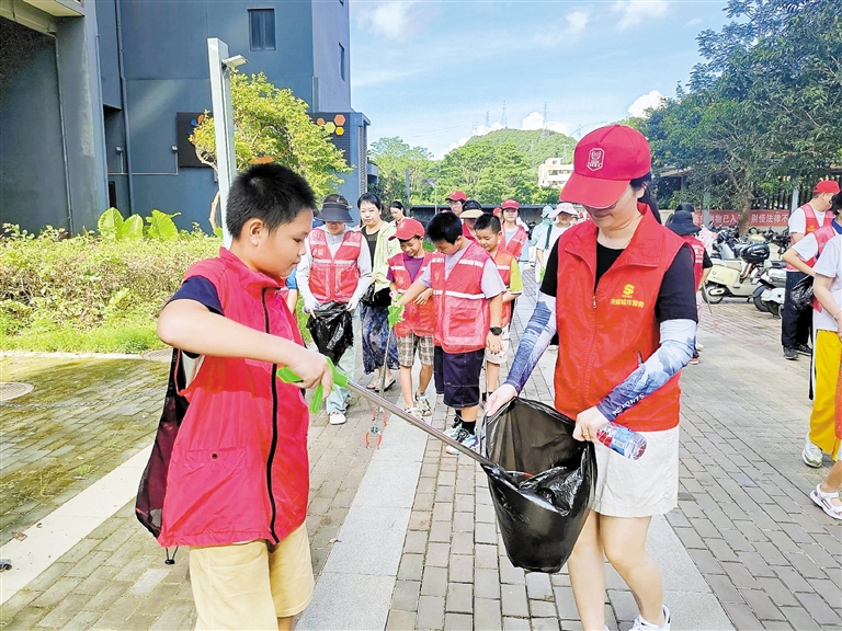 “社区小先生”参与清洁环境。深圳晚报记者 苏靖驹 通讯员 陈克兵 左和忠 摄