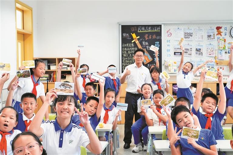 “大学时学过图片、视频处理,这些技能帮了大忙。”叶精宝表示,尽管素材制作对自己而言“顺手”,但仍花费不少心思——视频要挑选最能吸引孩子注意力的片段,明信片文字需兼顾趣味性与易懂性,确保学生能快速理解内容背后的意义,让每一份素材都“有故事、有温度”。