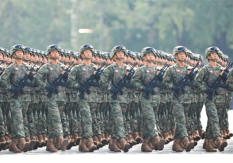 民兵方队 首次亮相以纪念抗战胜利为主题的阅兵活动 民兵方队全部由女民兵组成。这是民兵首次亮相以纪念抗战胜利为主题的阅兵活动。民兵是中国“三结合”武装力量的重要组成部分。抗日战争中,广大民兵为抗战胜利作出了不可磨灭的贡献,谱写了人民战争的不朽篇章。本版文图均据新华社