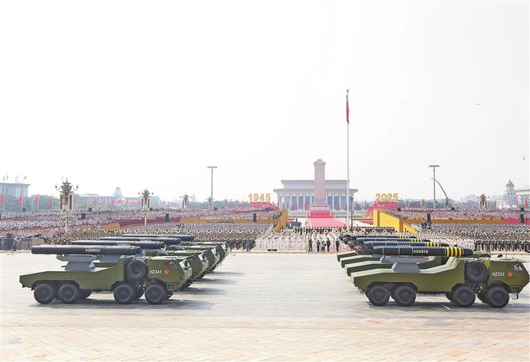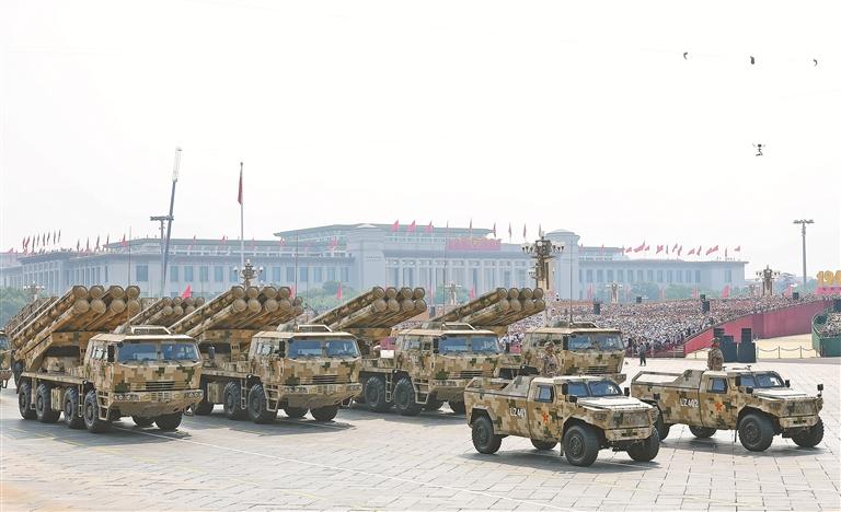 远程火炮方队 这次亮相的两型191远程箱式火箭炮,具有射程远、精度高、反应速度快、火力体系广、点面结合等特点,特别是箱式弹药补充方式能大幅缩短作战准备时间。 06~07版文图均据新华社