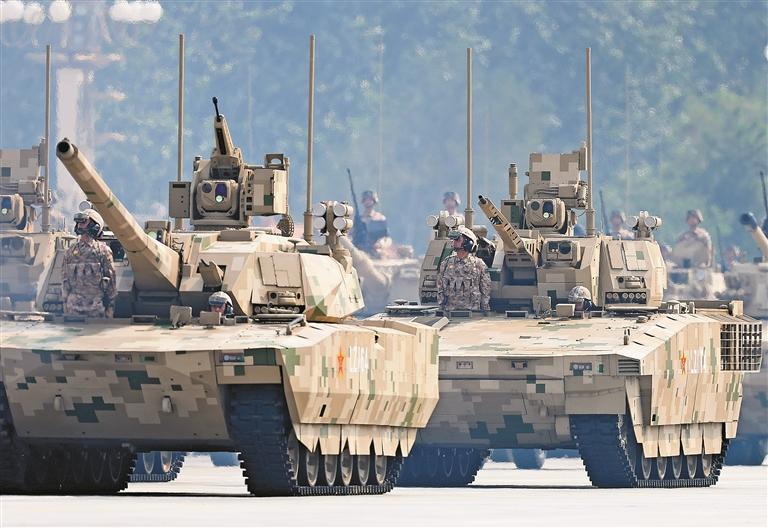 地面突击方队 作为陆军地面突击力量的新一代装甲装备,受阅的99B坦克、100坦克、100支援战车,尽显机动夺要、攻坚突破的强大战力,是我军高技术装备体系的重要组成部分。