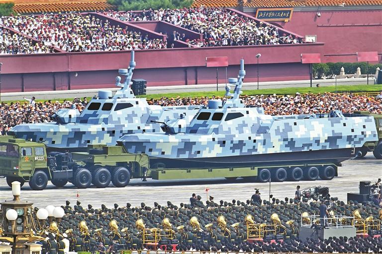 海上无人作战方队 这个方队受阅的新型无人潜航器、无人艇、无人布雷系统,具备隐蔽布放封锁、自主探测识别、集群组网攻击等作战能力,是海上作战的“奇兵利器”。