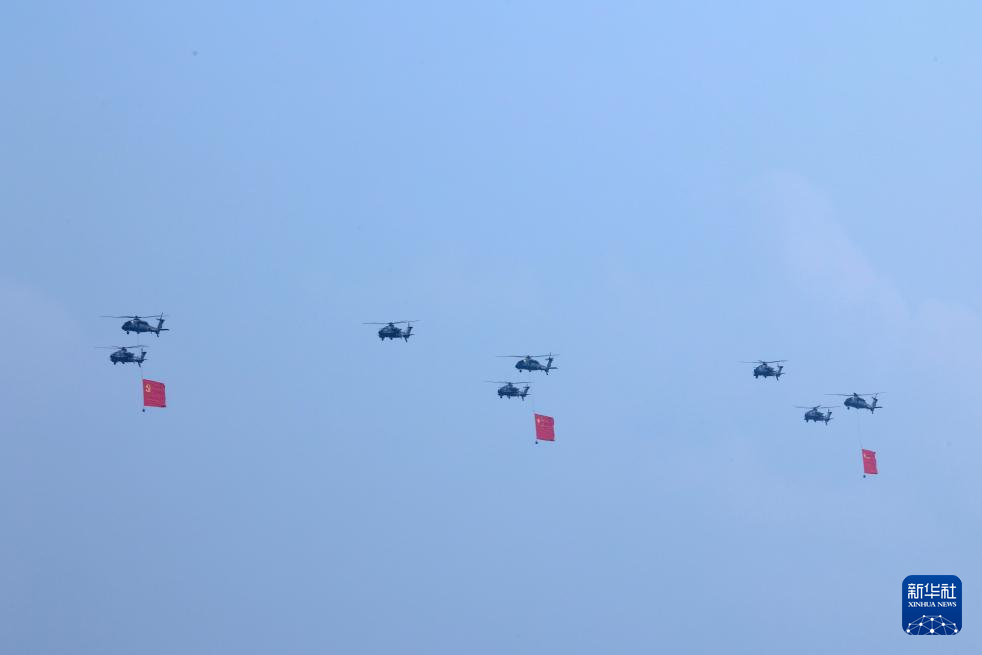 9月3日,纪念中国人民抗日战争暨世界反法西斯战争胜利80周年大会在北京隆重举行。这是空中护旗梯队飞过天安门广场上空,26架直升机汇成巨大的“80”字样。