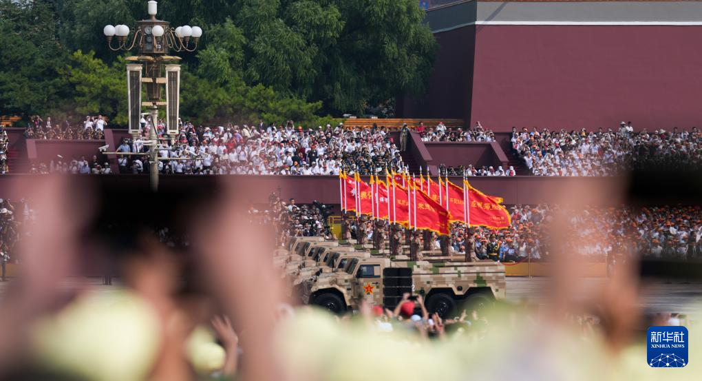 9月3日,纪念中国人民抗日战争暨世界反法西斯战争胜利80周年大会在北京隆重举行。这是战旗方队通过天安门广场。