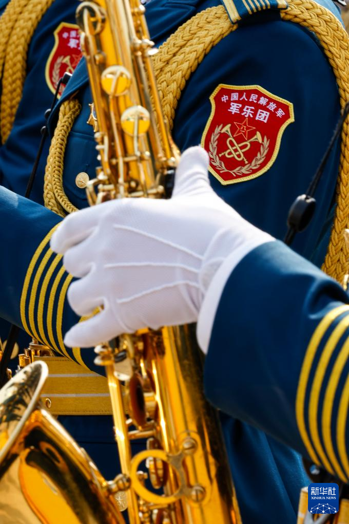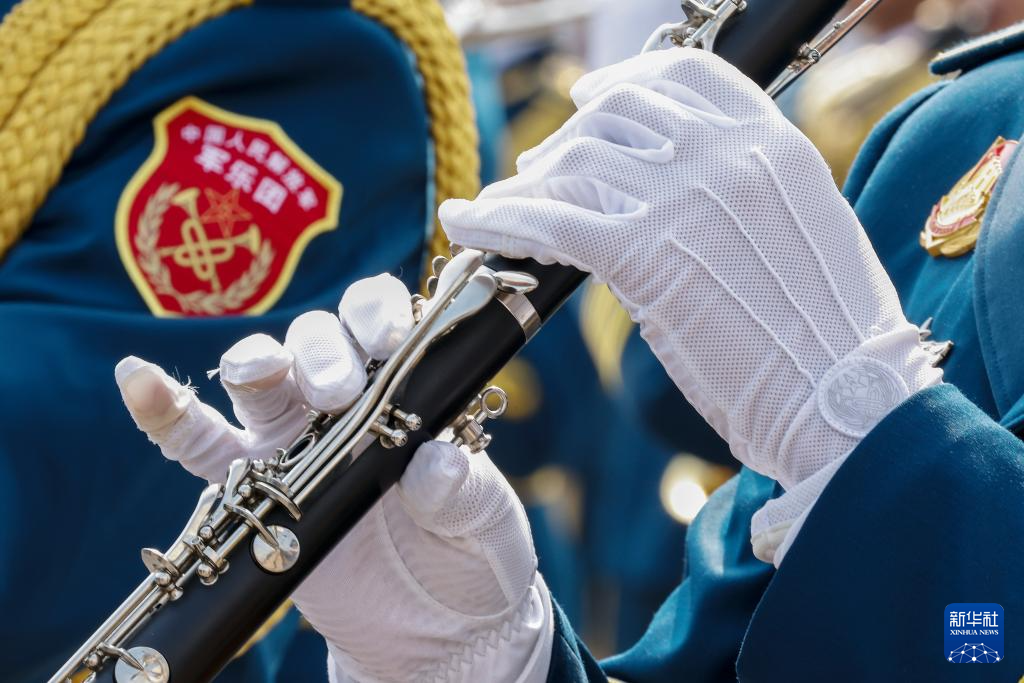 9月3日,纪念中国人民抗日战争暨世界反法西斯战争胜利80周年大会在北京隆重举行。这是中国人民解放军联合军乐团在演奏。
