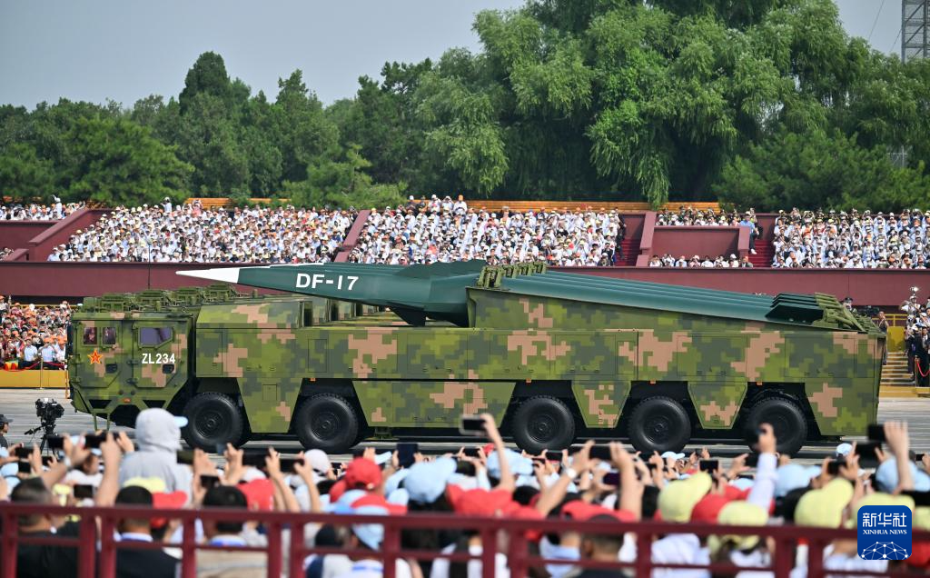 9月3日,纪念中国人民抗日战争暨世界反法西斯战争胜利80周年大会在北京隆重举行。这是高超声速导弹方队通过天安门广场。