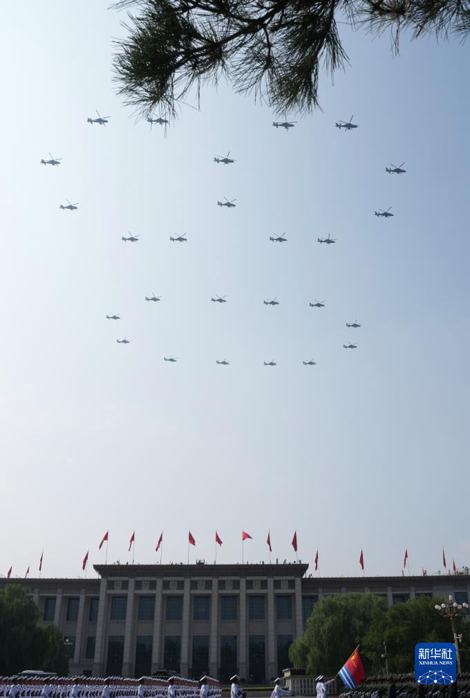 9月3日,纪念中国人民抗日战争暨世界反法西斯战争胜利80周年大会在北京隆重举行。这是加受油机梯队接受检阅。