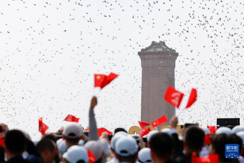 9月3日,纪念中国人民抗日战争暨世界反法西斯战争胜利80周年大会在北京隆重举行。这是纪念大会现场放飞和平鸽。