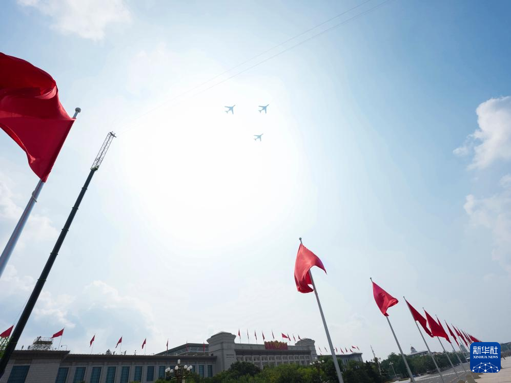 9月3日,纪念中国人民抗日战争暨世界反法西斯战争胜利80周年大会在北京隆重举行。这是轰炸机梯队通过天安门广场。