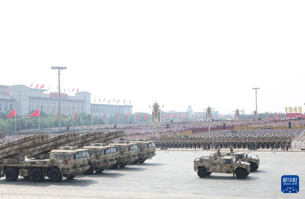 9月3日,纪念中国人民抗日战争暨世界反法西斯战争胜利80周年大会在北京隆重举行。这是远程火炮方队接受检阅。