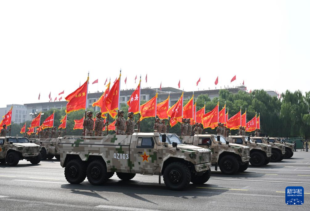 9月3日,纪念中国人民抗日战争暨世界反法西斯战争胜利80周年大会在北京隆重举行。这是战旗方队接受检阅。