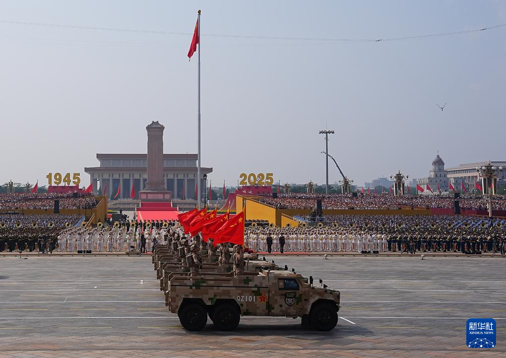 9月3日,纪念中国人民抗日战争暨世界反法西斯战争胜利80周年大会在北京隆重举行。这是战旗方队接受检阅。