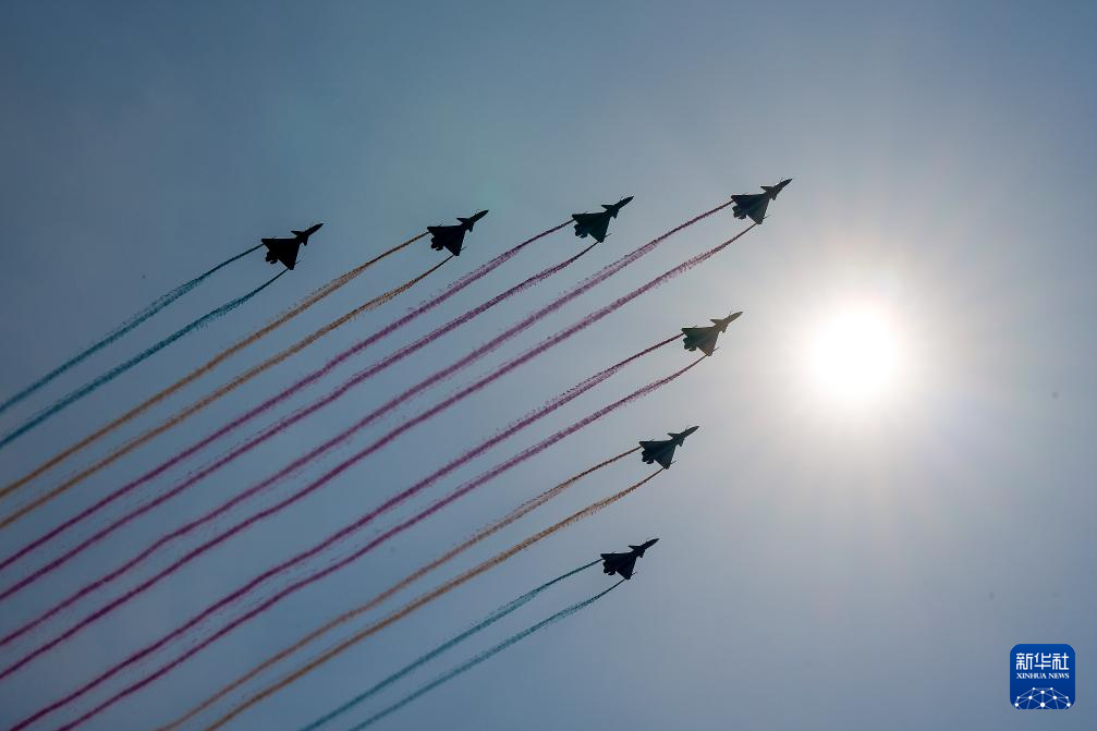 9月3日,纪念中国人民抗日战争暨世界反法西斯战争胜利80周年大会在北京隆重举行。这是教练机梯队通过天安门广场。