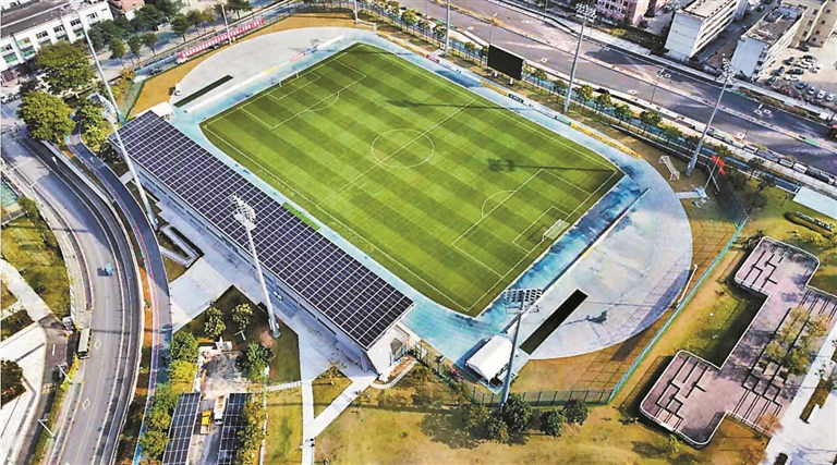 当前,深圳“超充之城2.0”建设不断提速。图为市青少年足球训练基地光储超充及车网互动一体化应用场景。(受访者供图)