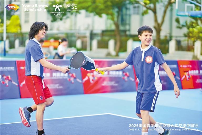 “2025美国青少年匹克球人文交流中国行”访华团师生与南山学子进行匹克球友谊赛。 南山区教育局供图