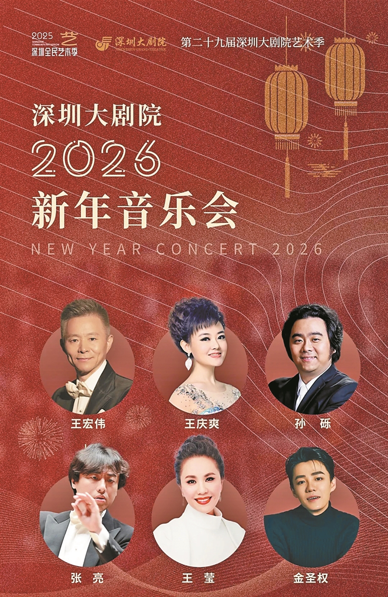12月31日,深圳大剧院爱乐乐团新年音乐会将为第29届深圳大剧院艺术季画上圆满句号。音乐会邀请歌唱家王宏伟、王庆爽、孙砾、王莹,青年音乐剧演员金圣权,携手著名指挥家、上海爱乐乐团副团长张亮与深圳大剧院爱乐乐团的艺术家们,在2025年的岁末,与观众一起迎接新年的到来。