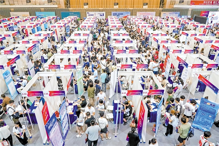 深圳新闻网2025年9月9日讯(深圳晚报记者 高向荣) 近日,以“湾区职缘 智汇未来”为主题的2025秋季大湾区重点用人单位就业实习双选会,在深圳大学城体育馆举办。