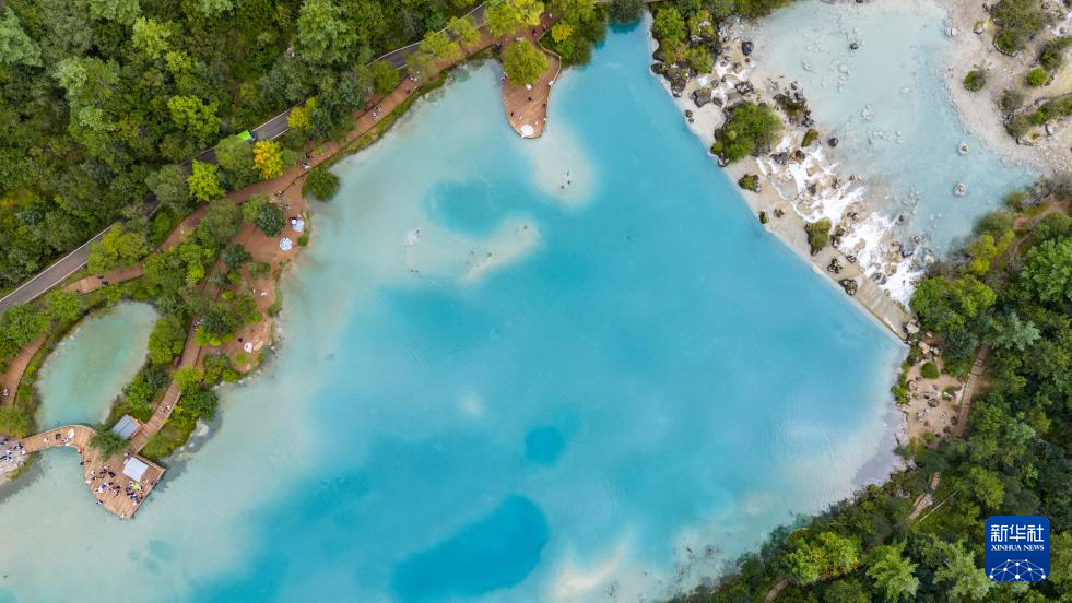 蓝月谷位于云南省丽江市玉龙雪山东麓甘海子以北、云杉坪南侧的山谷之中。9月,蓝月谷湖水充盈清澈,如同一颗颗蓝宝石镶嵌在山谷之中,吸引游客前来参观游览。