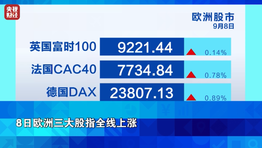 8日欧洲三大股指全线上涨