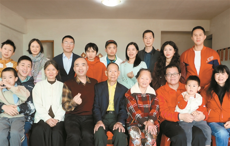 “我们家就是一个‘教育小团队’,长辈们的言传身教,让我从小就觉得教育是最有温度的事业。”叶婷婷口中的“教育小团队”,在一张家族合影中可清晰窥见:一排左五为她的外公,是家族教育事业的“奠基人”之一;一排右一为母亲,一排右三为父亲,二人早年在原宝安县长圳小学共事,同为特区教育“拓荒者”;二排右二是叶婷婷本人,右三为舅舅、右四为舅母,均为一线教育工作者。从祖辈到父辈再到同辈,“教师”的身份在这个家庭中代代延续。