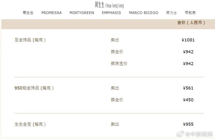 今日,记者查询发现,周生生足金饰品报价1081元/克,较前一日上涨15元/克。