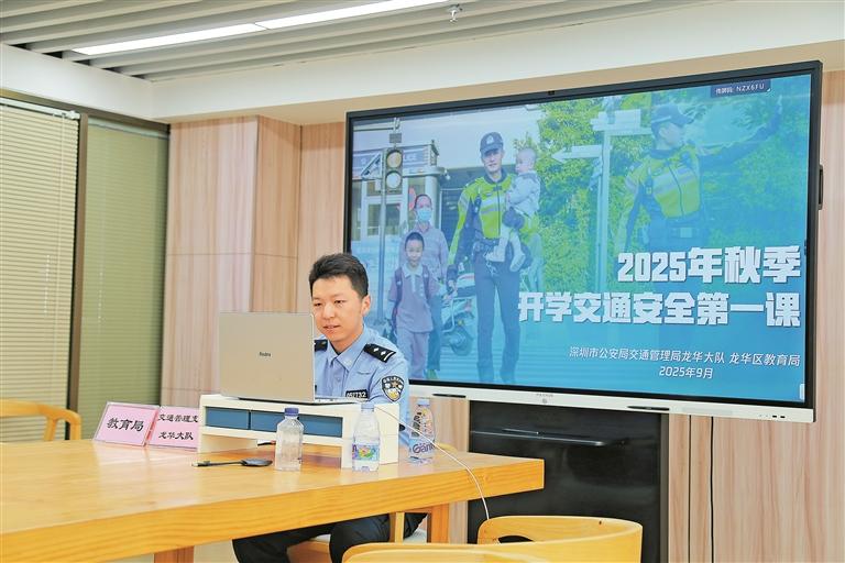 龙华新闻讯(记者 丁小梅 通讯员 陈丹妮 文/图)校园交通安全一直以来都是社会各界高度关注的焦点话题,为进一步提高学生的交通安全意识,9月9日,深圳市公安局交通管理局龙华大队(龙华交警大队)联合区教育局,为全区中小学、幼儿园学生开展2025年秋季开学交通安全第一课“云课堂”活动,全区370余所中小学、幼儿园,30万余名教职工、幼儿、中小学生收听。此次“云课堂”由龙华交警大队民警进行授课,活动受到了广大师生的欢迎。