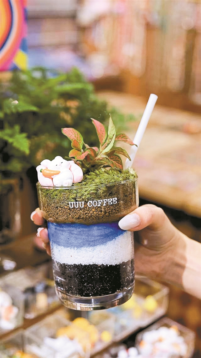不少到店的客人,除了进行手作体验外,同样还喜欢待在店里品咖啡、放空大脑。“瓦窑排特调”“冰浸白柚茉莉”等冷萃特调咖啡,不仅“卖相”好看,口感也相当不错。“我们还利用咖啡豆、咖啡渣做一些手作周边产品。”Lucy介绍,目前已设计推出了咖啡豆手链、戒指等饰品,还有咖啡渣香囊、咖啡渣香皂等。