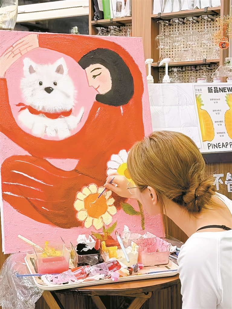消费者在店内创作作品。
