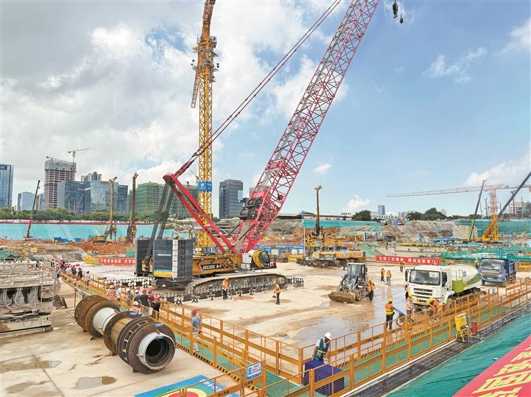 记者现场了解到,目前西丽综合交通枢纽项目正在开展基坑施工,将于下月进入主体结构施工阶段,计划于2028年8月竣工。该项目建成后将成为亚洲最大的地下轨道交通枢纽,将引入“4高铁+2城际+4地铁”,4条高铁为赣深客专、深茂铁路、深汕铁路、深南高铁;2条城际为深惠城际、深莞城际;4条城市轨道为13、15、27、29号线。项目由中建南方、中建二局承建。