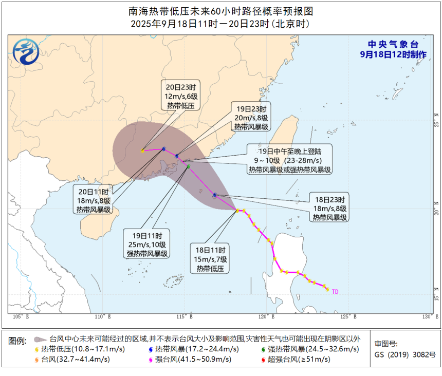 深圳市气象台2025年09月18日11时发布深圳台风白色预警信号,并将深汕特别合作区台风白色预警信号升级为蓝色。预计南海热带低压将加强为编号台风,并于19日中午至夜间在我省中东部沿海登陆,请注意做好防御。