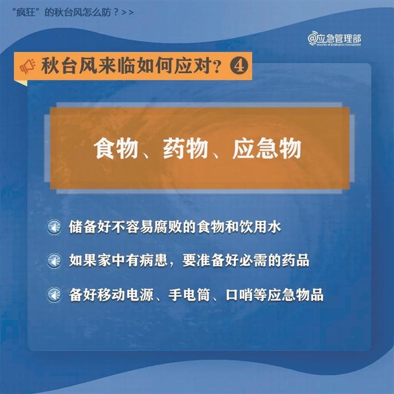 准备至少3天的应急物资,最好每人每天4升饮用水、方便食品、常用药品(特别是慢性病药物),以及装有手电筒、充电宝、急救用品和少量现金的应急包。