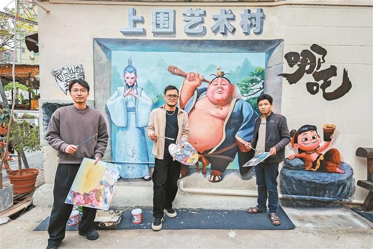陈传沛和团队成员创作的哪吒主题墙绘,成为市民热门打卡点。