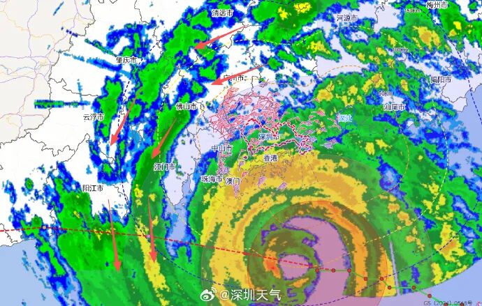 超强台风“桦加沙”于24日6-9时,以超强台风级在深圳南偏西近海处掠过,趋向台山到电白沿海一带,离深圳最近时距离140公里左右。