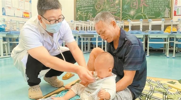 驻点在新智学校的社康医生立即携带急救药箱赶到孩子家人所在的临时安置区域。在仔细询问病史、进行体格检查,安抚他们紧张的情绪并用药后,医生并未离开,而是持续观察孩子的反应,确认情况初步稳定。