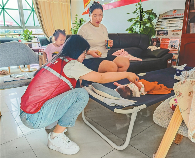 大鹏办事处水头社区专门设立接待室,安抚前来避险的小朋友。 深圳特区报记者 何龙 摄