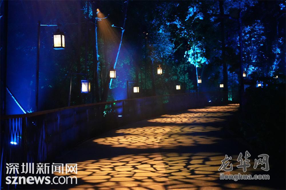 牛湖水碧道沿线的森林,被打造成一个绚烂的光影步道,迎接来自全国各地的哈利·波特粉丝,带领大家踏上一段难忘的魔法之旅。这里高度还原魔法禁林的探险之路,拥有四十多个魔法互动场景,是该项目在多国家落地以来,互动场景最多的一次。