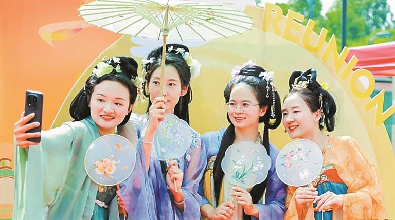 深水龙华水务公司员工们身着汉服游园。