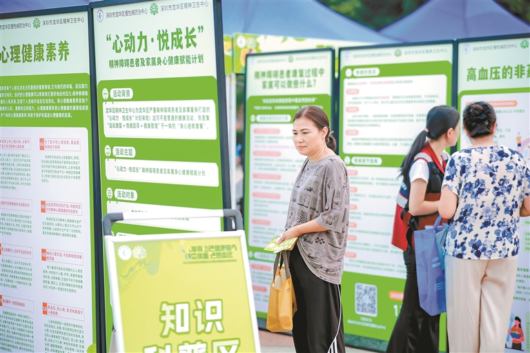 在知识科普区,市民学习心理健康和高血压相关知识。