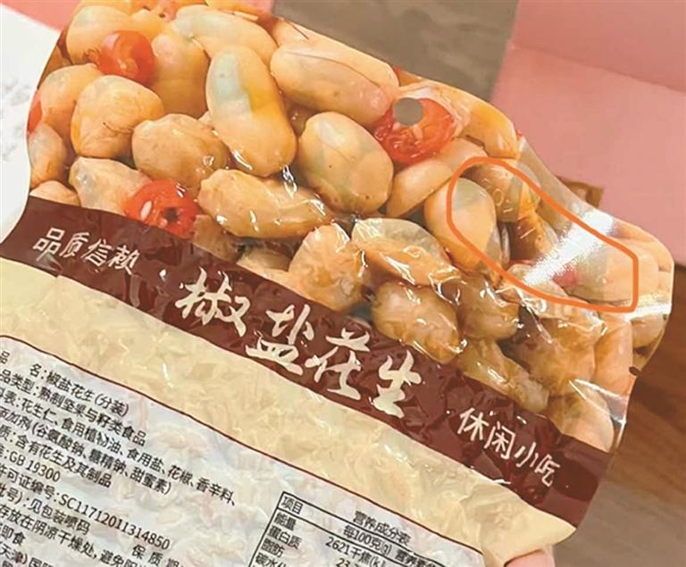 此外,字样印刷方式也会影响数字的展示效果。在某大型超市,记者看到一款可可隆品牌的椒盐花生,尽管激光刻印的生产日期字迹具有凹凸痕迹,但因近乎透明的颜色,其与包装袋的图案融为一体,消费者仍较难看清。