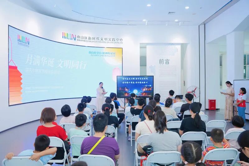 10月5日,南山区新时代文明实践中心展厅里,“我们的节日·精神的家园”——“月满华诞,文明同行”国庆中秋“双节”游园会活动正式开启。讲师围绕中秋的历史展开讲解,从“小家团圆”的传统意涵延伸至“大国同心”的时代情怀,揭示了传统节日背后的家国情怀。