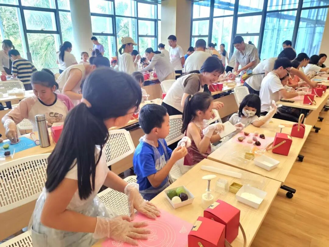 下午的冰皮月饼制作环节人气攀升,活动参与人员在糕点师指导下有序分组操作,从冰皮揉制、馅料称重到模具压制,默契协作,成功完成独具心意的月饼创作。过程中,不少市民主动分享揉面技巧、馅料搭配心得,邻里间的交流互动让现场氛围愈发温馨和睦。