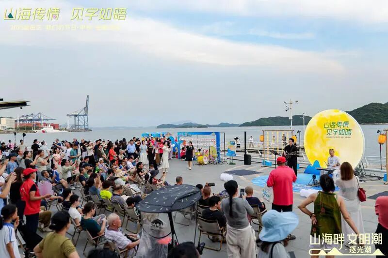 表演者以月光为幕、山海为台,将传统艺术与现代演绎相融合,引得观众时而驻足聆听,时而报以热烈掌声。舞台旁,非遗雅集区成为亲子家庭的热门打卡点,市民们踊跃参与“猜灯谜赢文创”活动,并亲手制作中秋香囊,药香袅袅中,传统习俗悄然浸润心田。