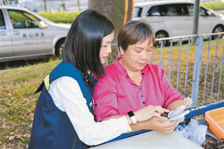 工作人员协助摊主进行摊位申报。