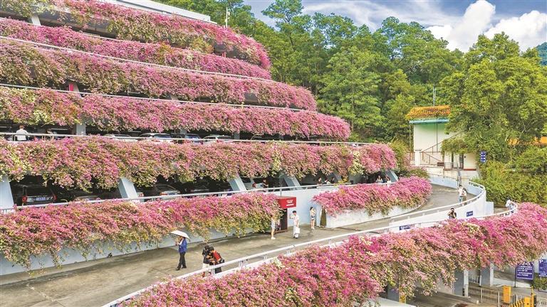 近日,深圳“网红”停车场的粉色瀑布花海又开了,这座位于仙湖植物园旁的停车场再次披上“花衣”,迎来一批又一批的市民、游客在此打卡拍照。