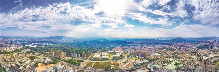 龙华区为企业构建了“梯度培育+政策护航+精准服务”三位一体培育服务体系。图为充满活力的九龙山数字城。