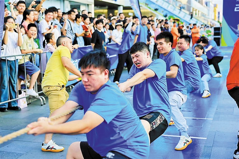 龙华新闻讯(记者 袁春燕 通讯员 印婷婷 杨祺辉 文/图)为迎接第十五届全国运动会,营造“全民参与、共享全运”的浓厚氛围,10月15日至19日,2025年大浪街道拔河比赛在后浪新天地成功举办。本次赛事以迎全运为主题,吸引了来自大浪街道园区、企业、机关事业单位、社区工作站、驻街单位和股份公司的99支代表队、近1200名参赛者同场竞技,掀起了一场全民关注、全民参与的全民健身热潮。